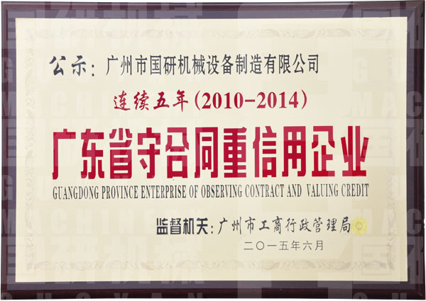 连续七年获”守合同 重信用企业“称号