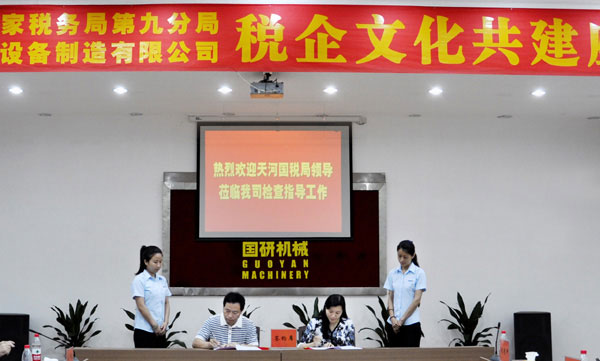 天河国税第九分局朱慧严局长和公司总经理王声位签署“税企文化共建协议”