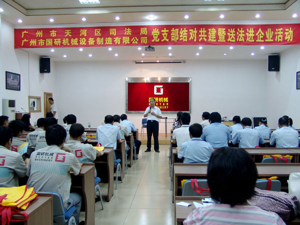 9月7日下午,广州市天河区司法局党支部和文教工作队一行18人在局长罗育辉和副局长曾晓云的带领下,来到广州市U8网页版页面登录_U8(中国)设备制造有限公司举行党支部结对共建暨送法进企业活动。