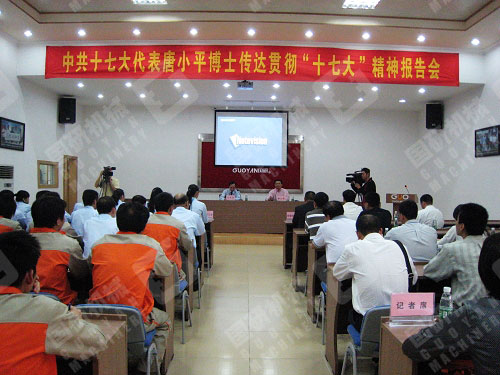 11月14日下午,阳光灿烂,秋风送爽,在喜庆的锣鼓和欢声笑语中,座落于广州市天河区珠吉街的广州市U8网页版页面登录_U8(中国)设备制造有限公司迎来了党的十七大代表唐小平博士。唐小平代表面对国研公司党支部全体党员和公司全体员工,作了一场丰富详实、精彩生动的报告。珠吉街党工委、办事处领导班子成员、街属各支部书记、以及天河区委组织部、区委宣传部的有关负责同志应邀出席了报告会。